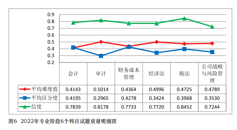 根据中注协发布的《2022年注册会计师全国统一考试分析报告》,我们可以了解到CPA各科的难度(系数越接近于1,试题难度越低):来源:《2022年注册会计师全国统一考试分析报告》
